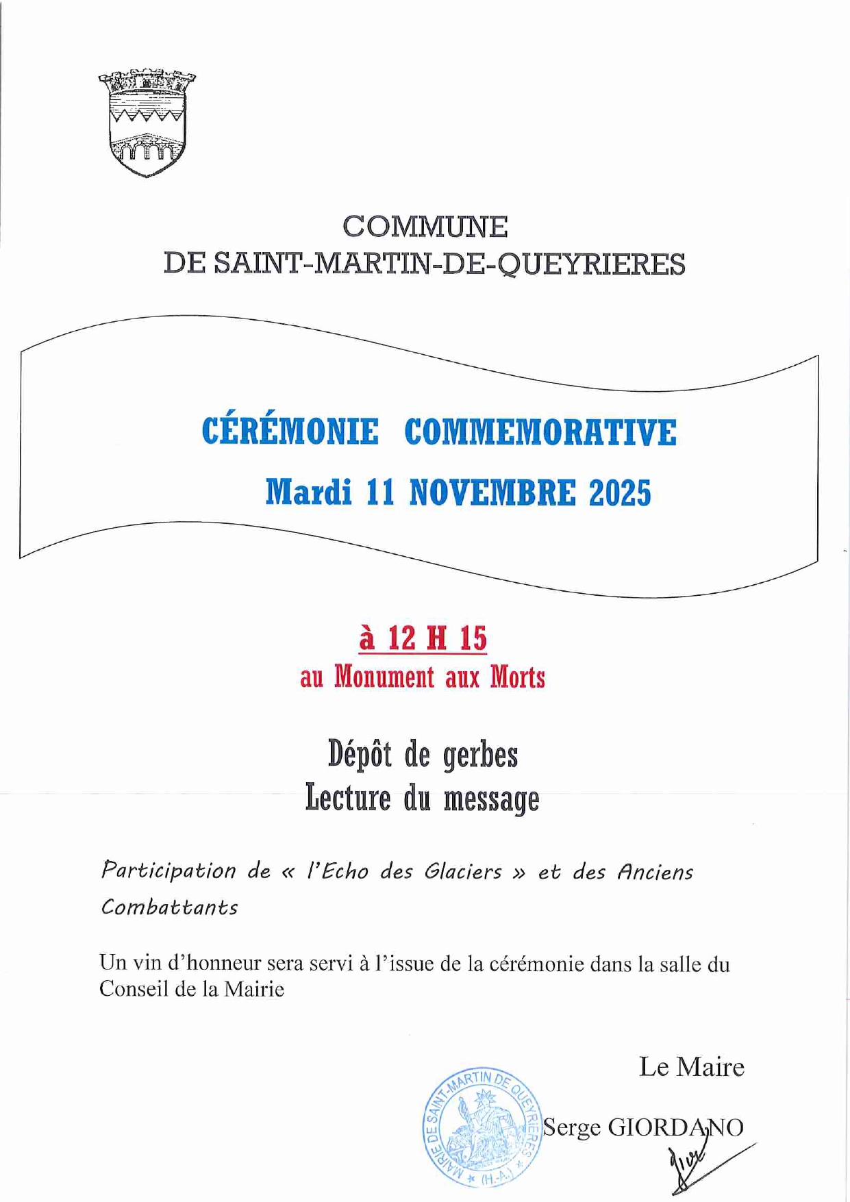 Actualités Cérémonie du 11 novembre Publiée le lundi 03 novembre 2025 10h25 Cérémonie du 11 novembre Retour à la liste des actualités