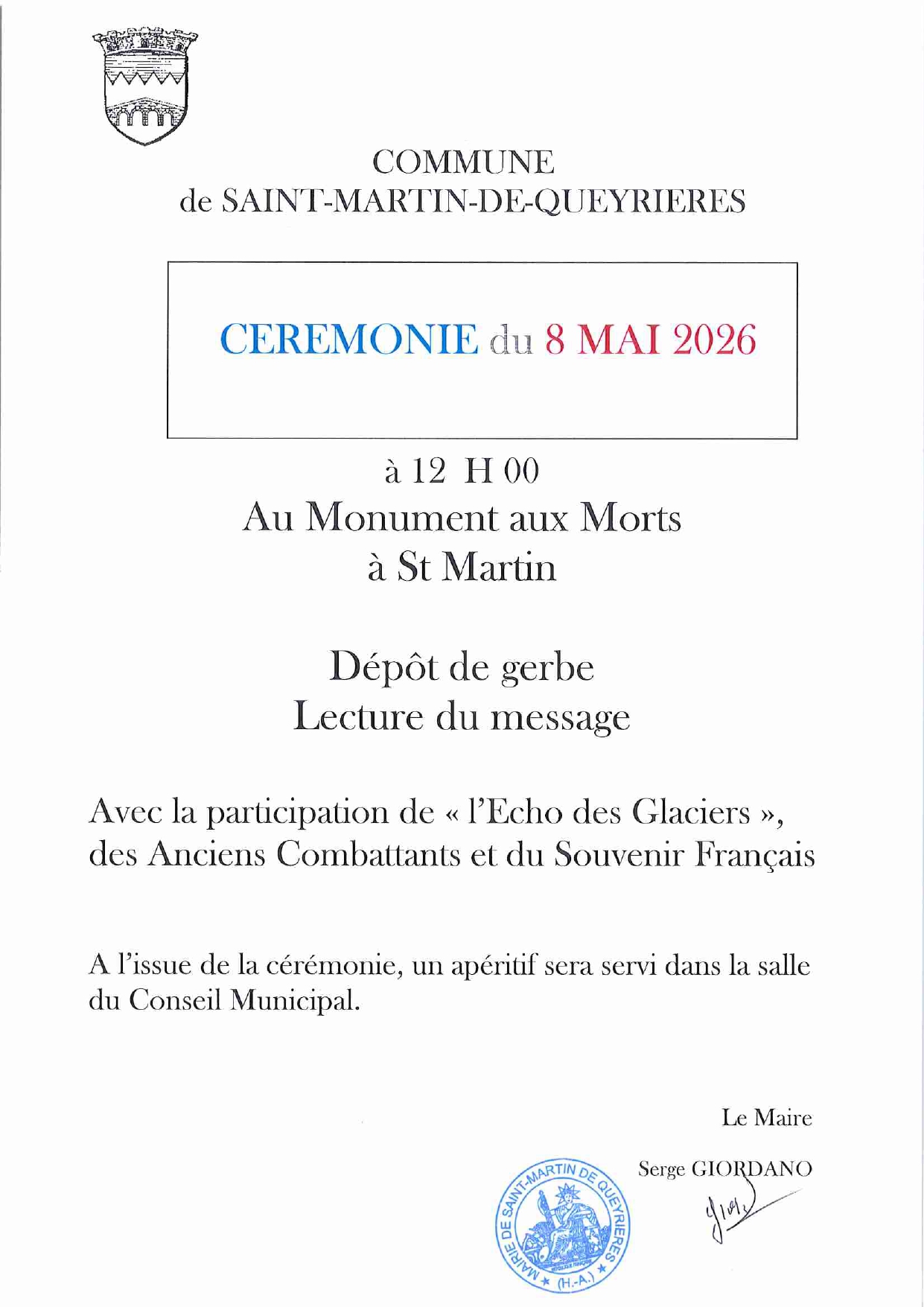 Actualités Cérémonie du 8 mai Publiée le jeudi 30 avril 2026 08h20 Cérémonie du 8 mai Retour à la liste des actualités