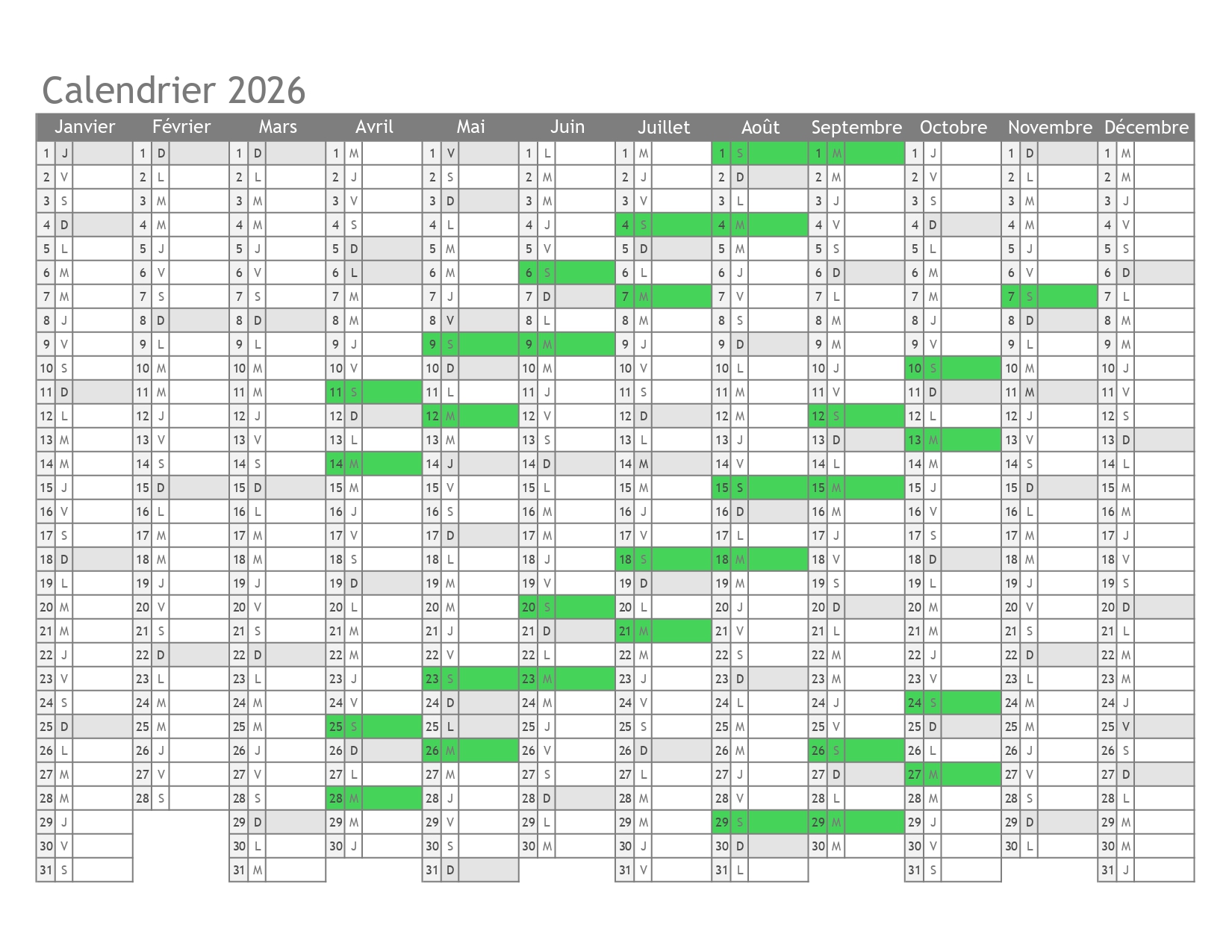 Planning d'ouverture